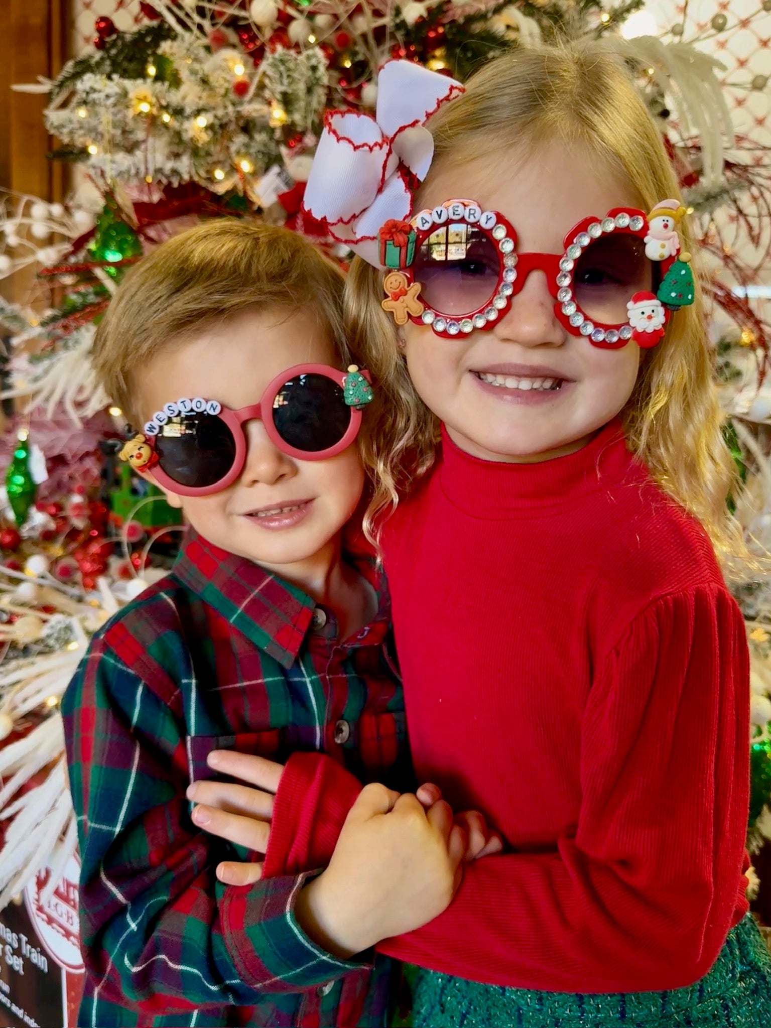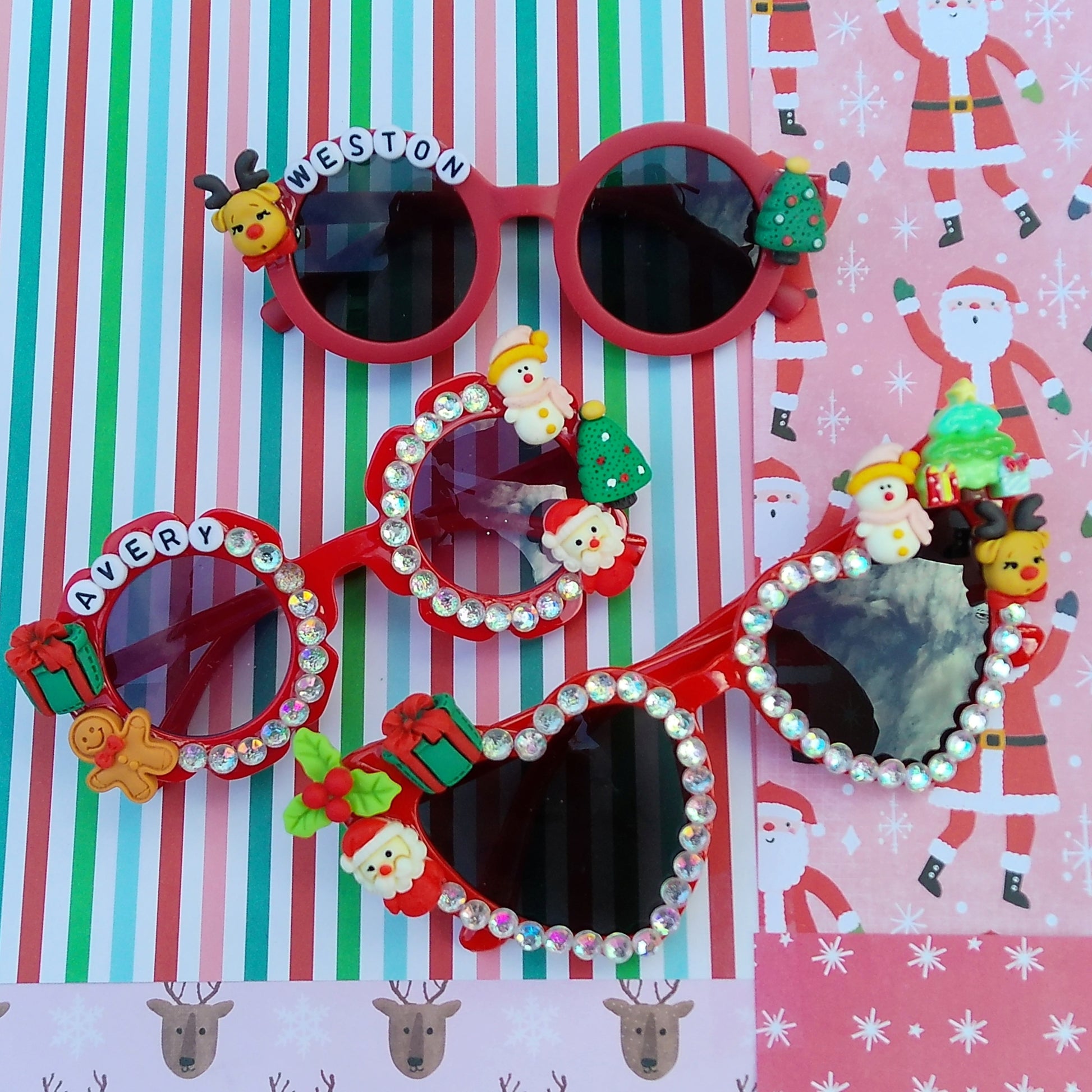 Snow Much Fun! Bring on the chill! These icy-blue personalized sunglasses sparkle with snowflake charms and winter magic. Perfect for snow days, holiday strolls, or twirling through a winter wonderland—because frosty days deserve extra sparkle!