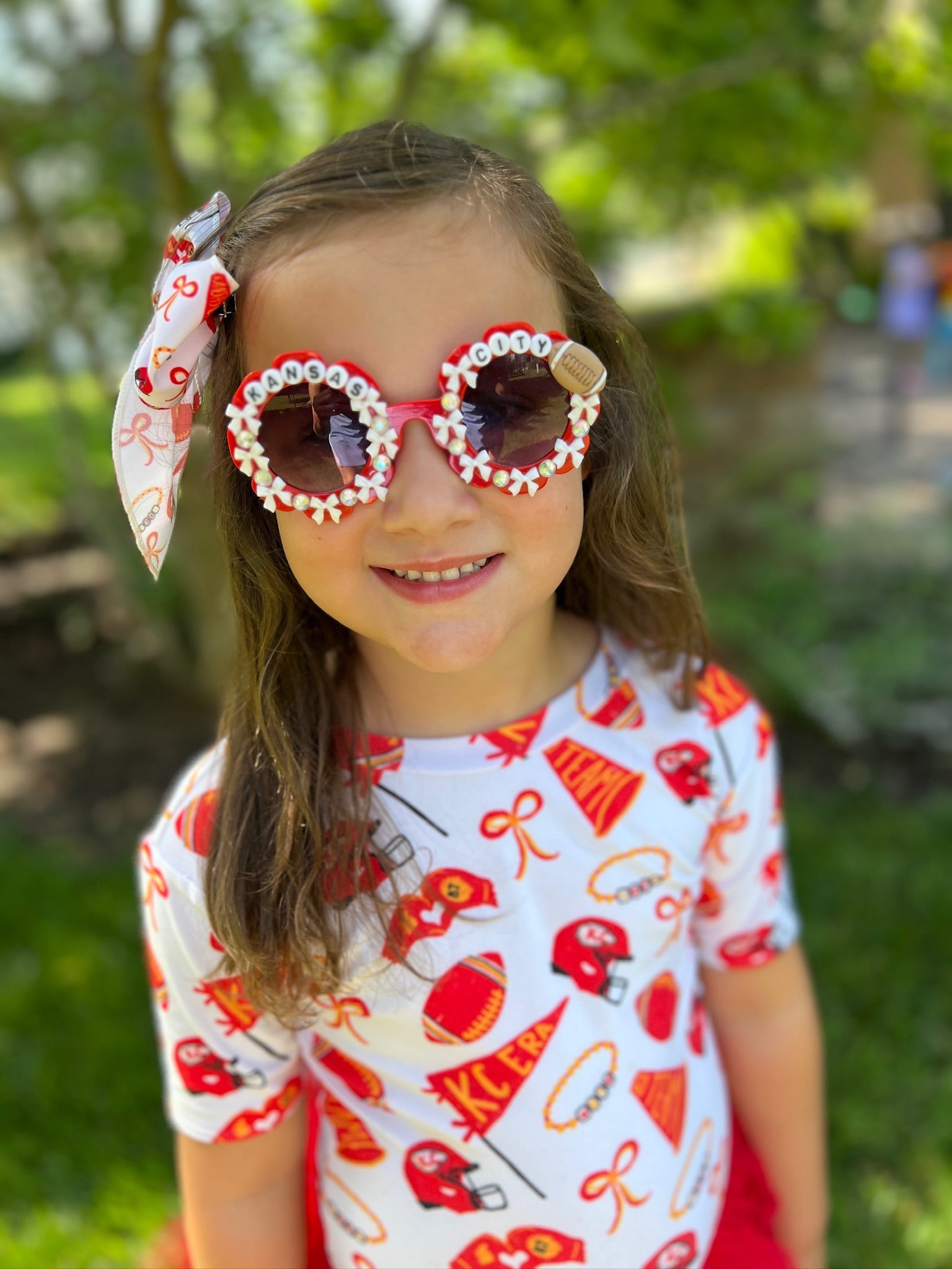 For your girliest football fan! Sunnies will say KANSAS CITY unless specified.