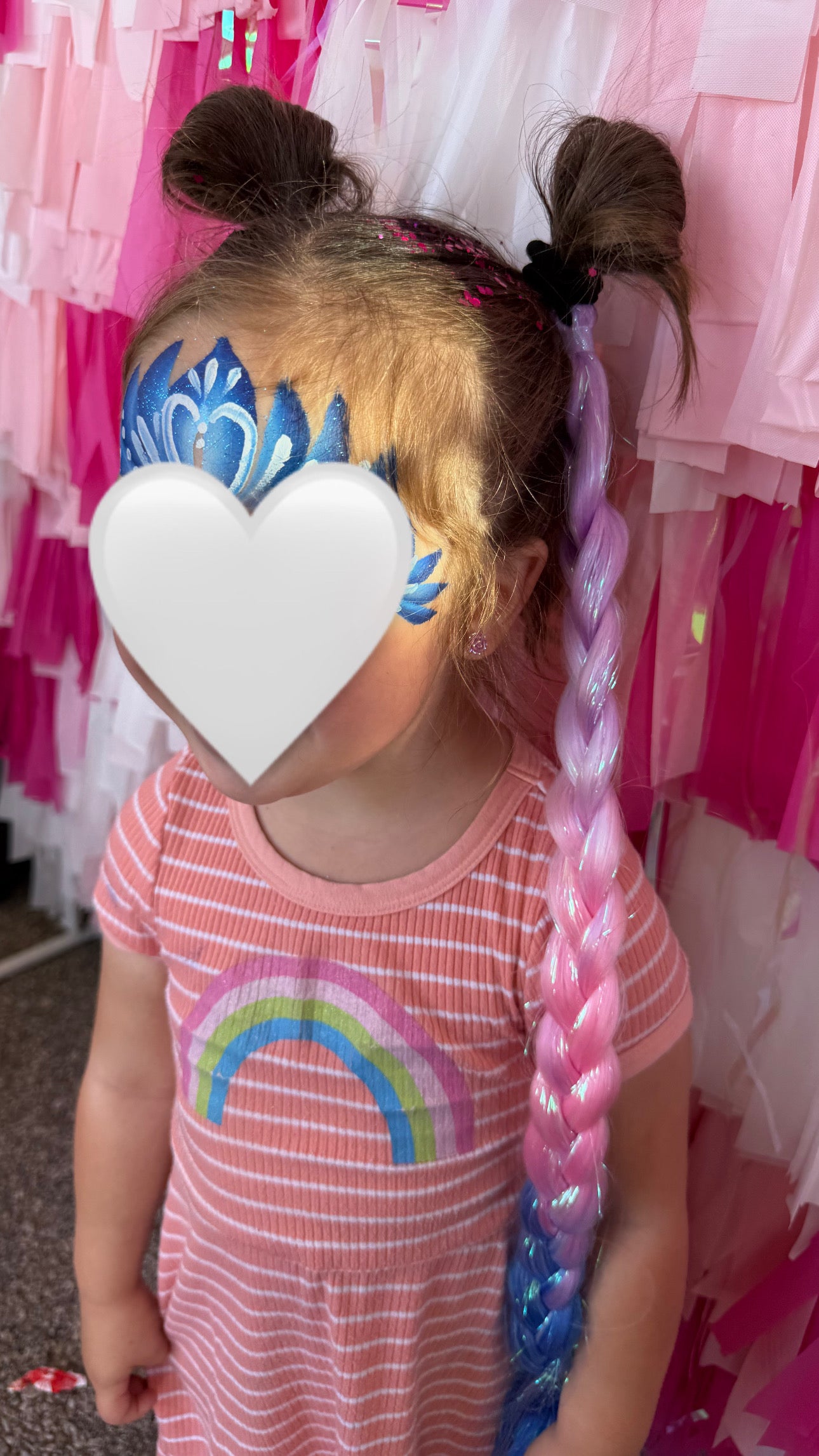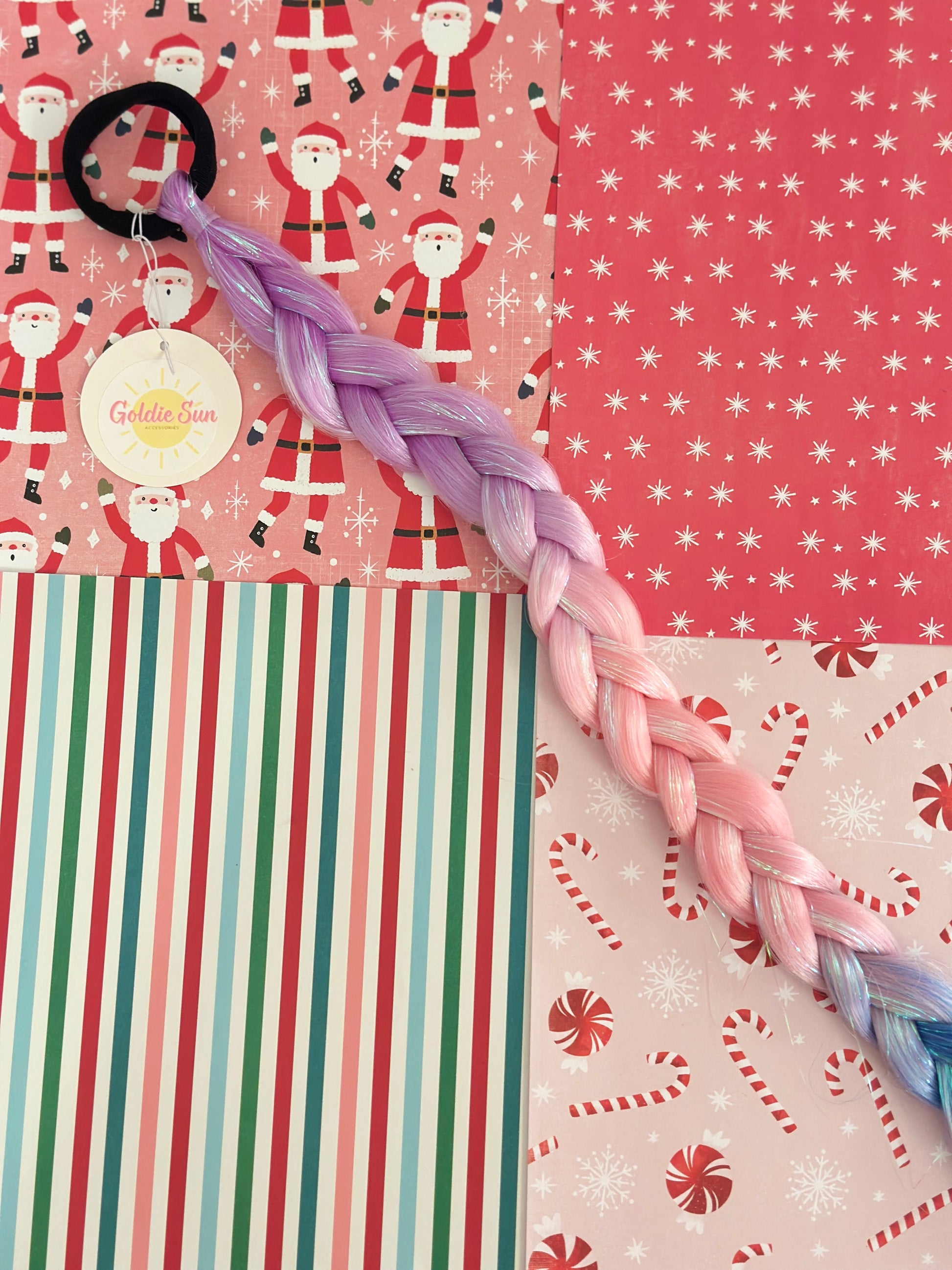 Playing dress up was never so fun! 18" tinsel hair extensions tied in a braid with a pony tail holder to easily and painlessly add to your hair!