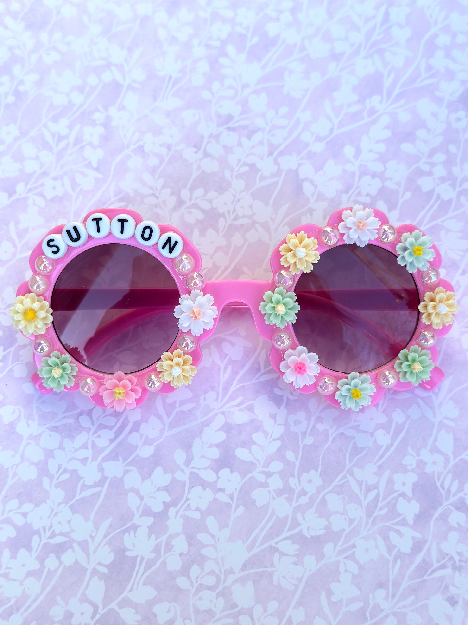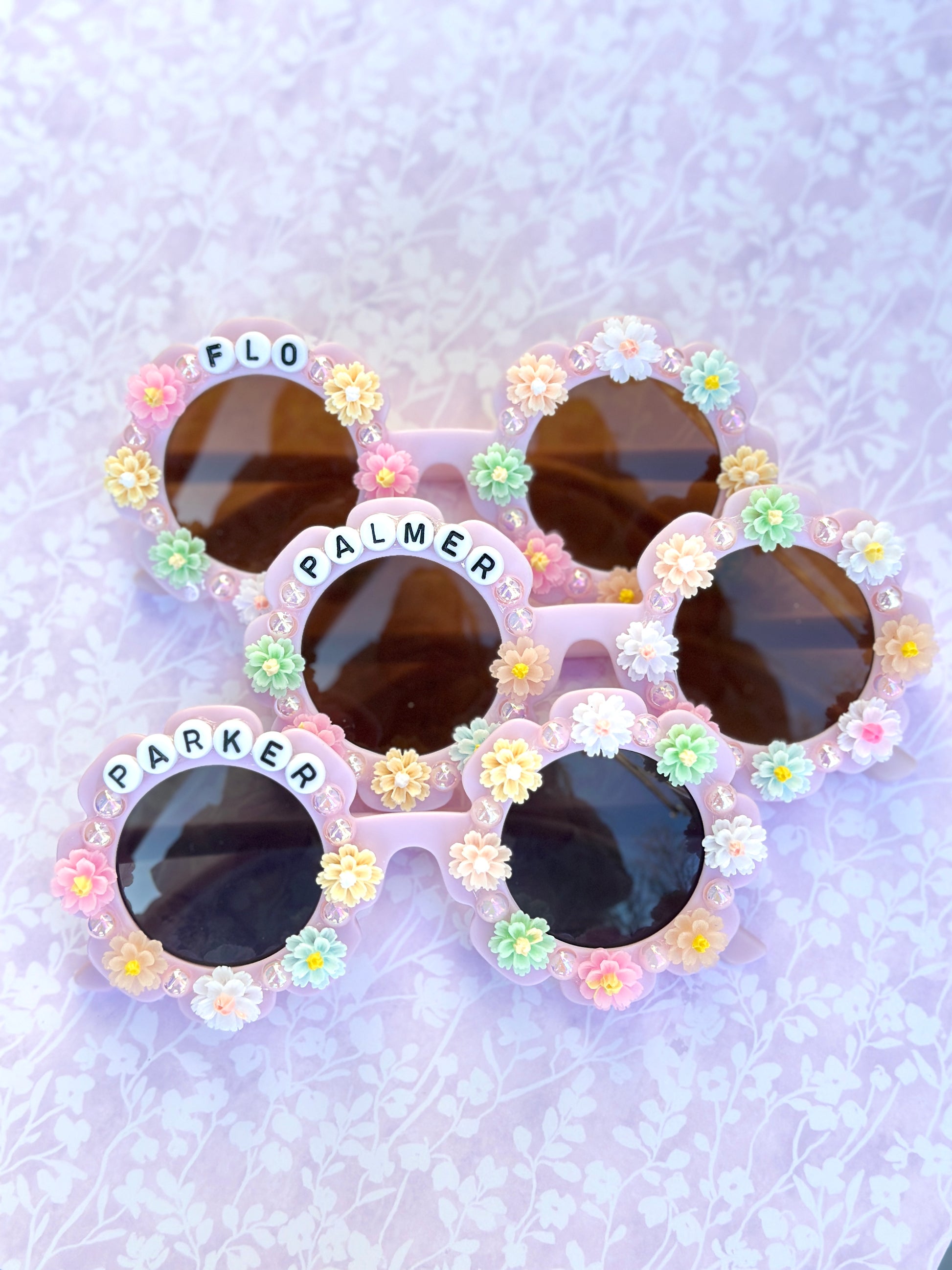 Small frames fit up to age 7 ($19.99). Large frames fit ages 8+ up ($24.99). Please double check size and color selection, as our handbeaded, personalized products are made to order and can not be returned or exchanged.