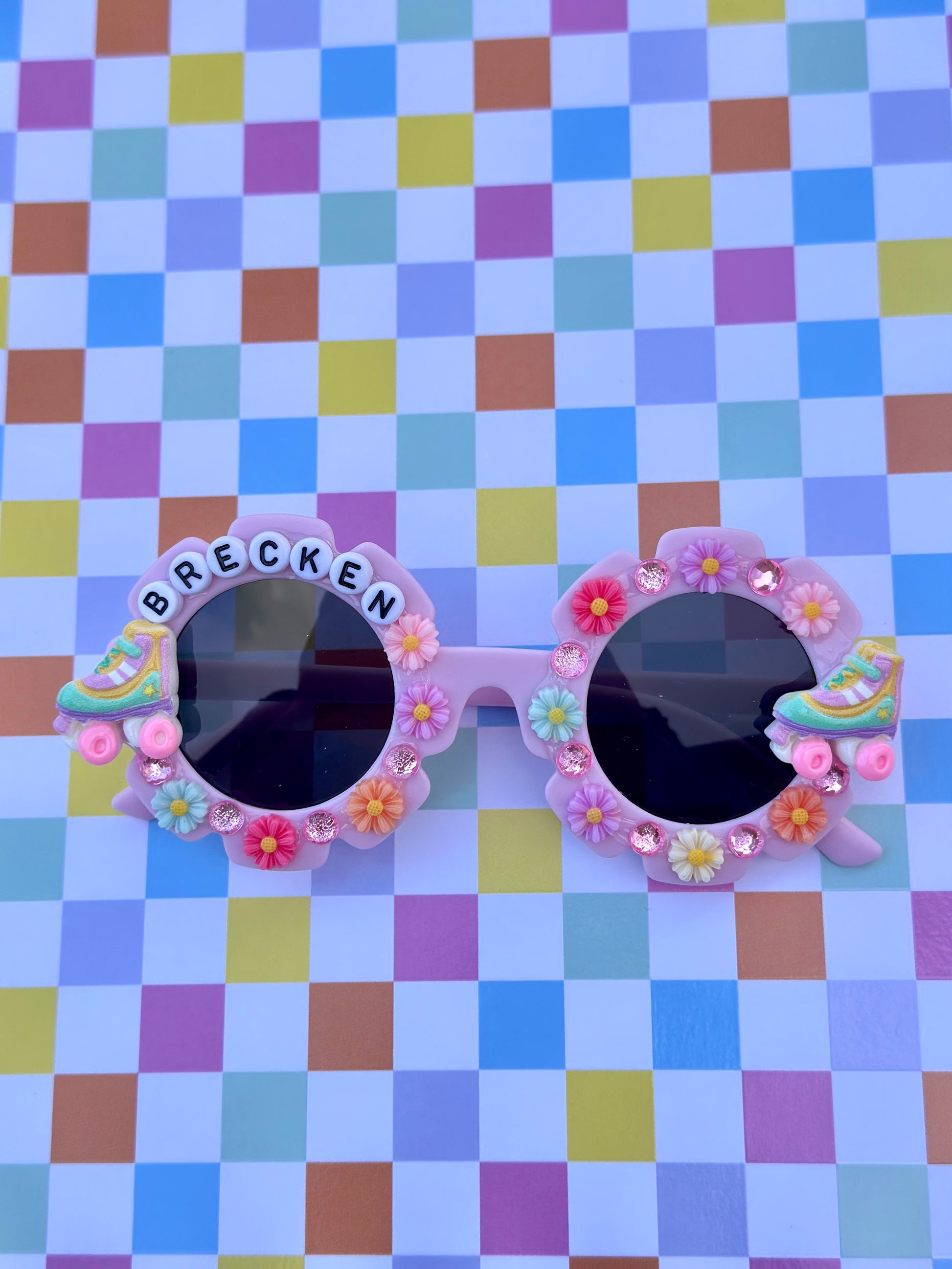 Small frames fit up to age 7 ($19.99). Large frames fit ages 8+ up ($24.99). Please double check size and color selection, as our handbeaded, personalized products are made to order and can not be returned or exchanged.